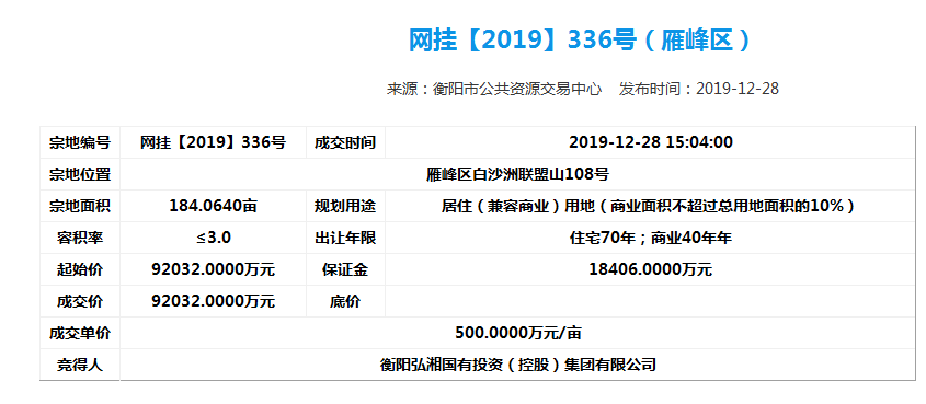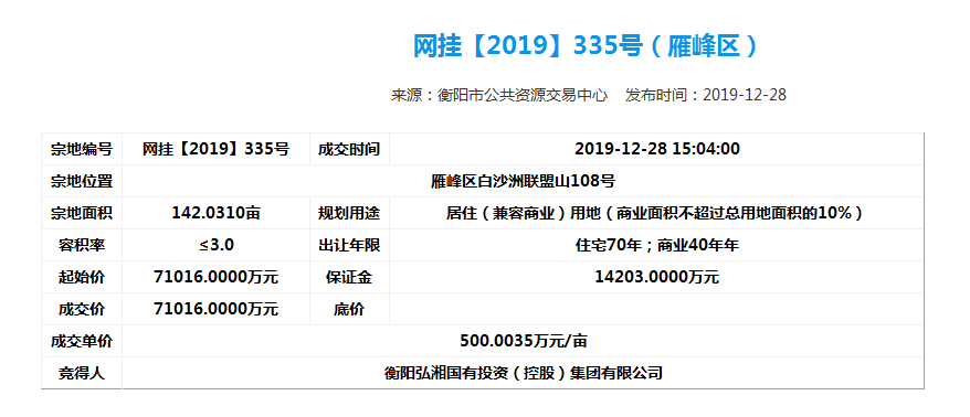為了進(jìn)一步做好市場(chǎng)化運行,弘湘國投以市場(chǎng)經(jīng)營(yíng)為主體,向資本市場(chǎng)進(jìn)軍,進(jìn)一步做實(shí)做強國有資產(chǎn),增強自身活力。2019年12月28日下午,弘湘國投在市公共資源交易中心網(wǎng)站成功摘牌6宗共計523畝改制企業(yè)土地,摘牌總價(jià)超24億元,并于當日簽訂了《國有建設用地使用權公開(kāi)出讓成交確認書(shū)》。2019年12月31日,弘湘國投與市自然資源和規劃局正式簽訂了《國有建設用地使用權出讓合同》。
