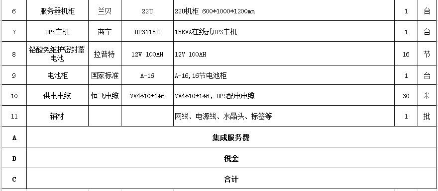4、為保障服務(wù)器設備在斷電時(shí)不丟失業(yè)務(wù)數據,需更換一套UPS設備,盡量延長(cháng)服務(wù)器的待機時(shí)間。(詳細清單附后)