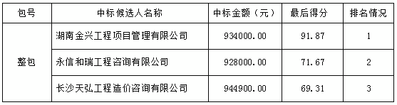 成交供應商名稱(chēng): 湖南金興工程項目管理有限公司