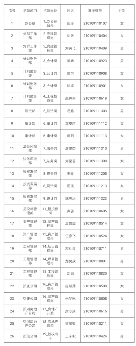 根據《衡陽(yáng)弘湘國有投資(控股)集團有限公司2020年公開(kāi)招聘員工公告》的規定,我司公開(kāi)招聘員工按發(fā)布公告、報名、筆試、資格審查、面試、體檢、考察等程序,現確定26名擬聘用人員,并予以公示。