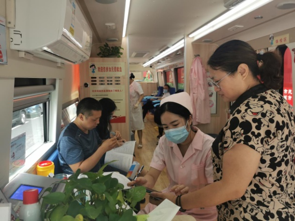 早上7點(diǎn)30分,獻血車(chē)緩緩駛入弘湘國投辦公區,無(wú)償獻血拉開(kāi)了序幕,員工們陸續到獻血車(chē)登記排隊,有條不紊地登記信息、血液化驗檢測、采血。在這些獻血員工當中,他們有的是數次參加無(wú)償獻血的老同志,也有剛參加工作不久的新員工,其中不乏巾幗不讓須眉的女同志。