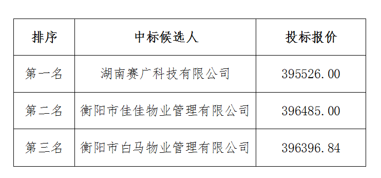 衡陽(yáng)視界科技發(fā)展有限公司物業(yè)服務(wù)項目中標候選人公示