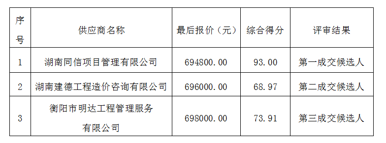 成交供應商名稱(chēng):湖南同信項目管理有限公司