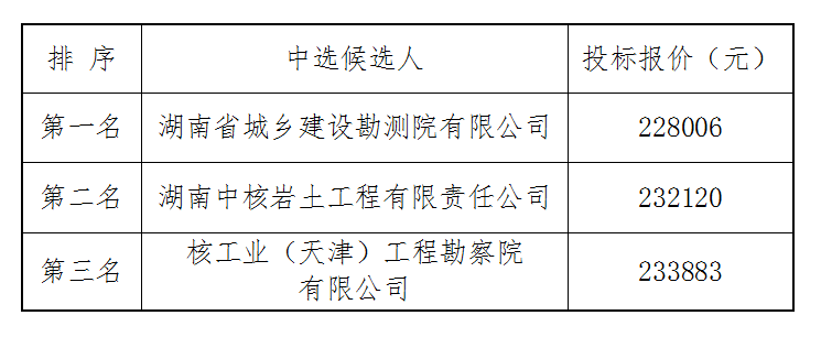 幸福河項目工程竣工測量單位比選于2022年8月3日上午9時(shí)00分(北京時(shí)間)進(jìn)行了比選開(kāi)標、評標活動(dòng),評標委員會(huì )按照比選文件規定的評標辦法及原則進(jìn)行評定,推薦中選候選人排名如下:
