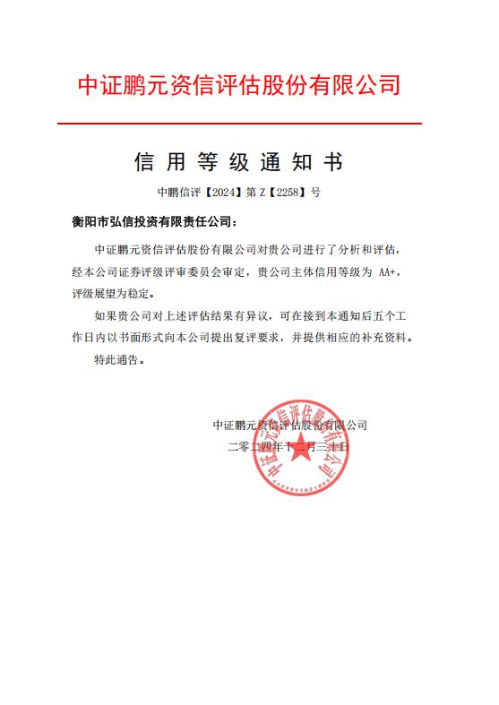 衡陽(yáng)國資新增一家AA+信用等級企業(yè)