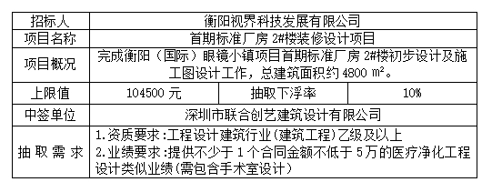 招標人:衡陽(yáng)視界科技發(fā)展有限公司