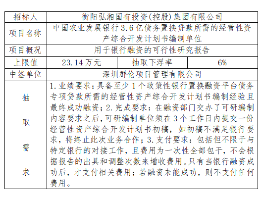 招 標 人:衡陽(yáng)弘湘國有投資(控股)集團有限公司