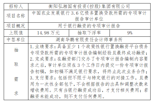 中國農業(yè)發(fā)展銀行3.6億債務(wù)置換貸款所需的專(zhuān)項審計報告審計單位隨機抽取結果公示