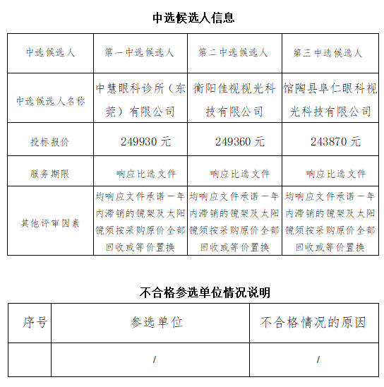 衡陽(yáng)(國際)眼鏡小鎮視光檢測中心鏡架合同太陽(yáng)鏡采購公開(kāi)比選中選候選人公示
